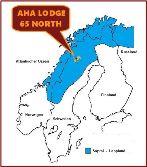Lappland (388.350 km2) ist 10 % grösser als Deutschland oder etwa 9,5 mal so gross wie die Schweiz. Es liegt im äussersten Norden Europas, direkt angrenzend an den Nordatlantik und das Eismeer. Lappland erstreckt sich über den Norden der vier autonomen Staaten Norwegen, Schweden, Finnland und Russland. Trotz der dünnen Besiedlung und weitgehend unberührten Natur bietet es eine erstaunlich gute Verkehrs-Infrastruktur. Die Aha Lodge liegt in schwedisch Lappland in der Provinz Västerbotten. Der Hauptort Umeå (84.000 Einwohner) hat einen internationalen Flughafen und die ganze Provinz (210.000 Einwohner) ist mit einem Netz von gut ausgebauten Strassen durchzogen.